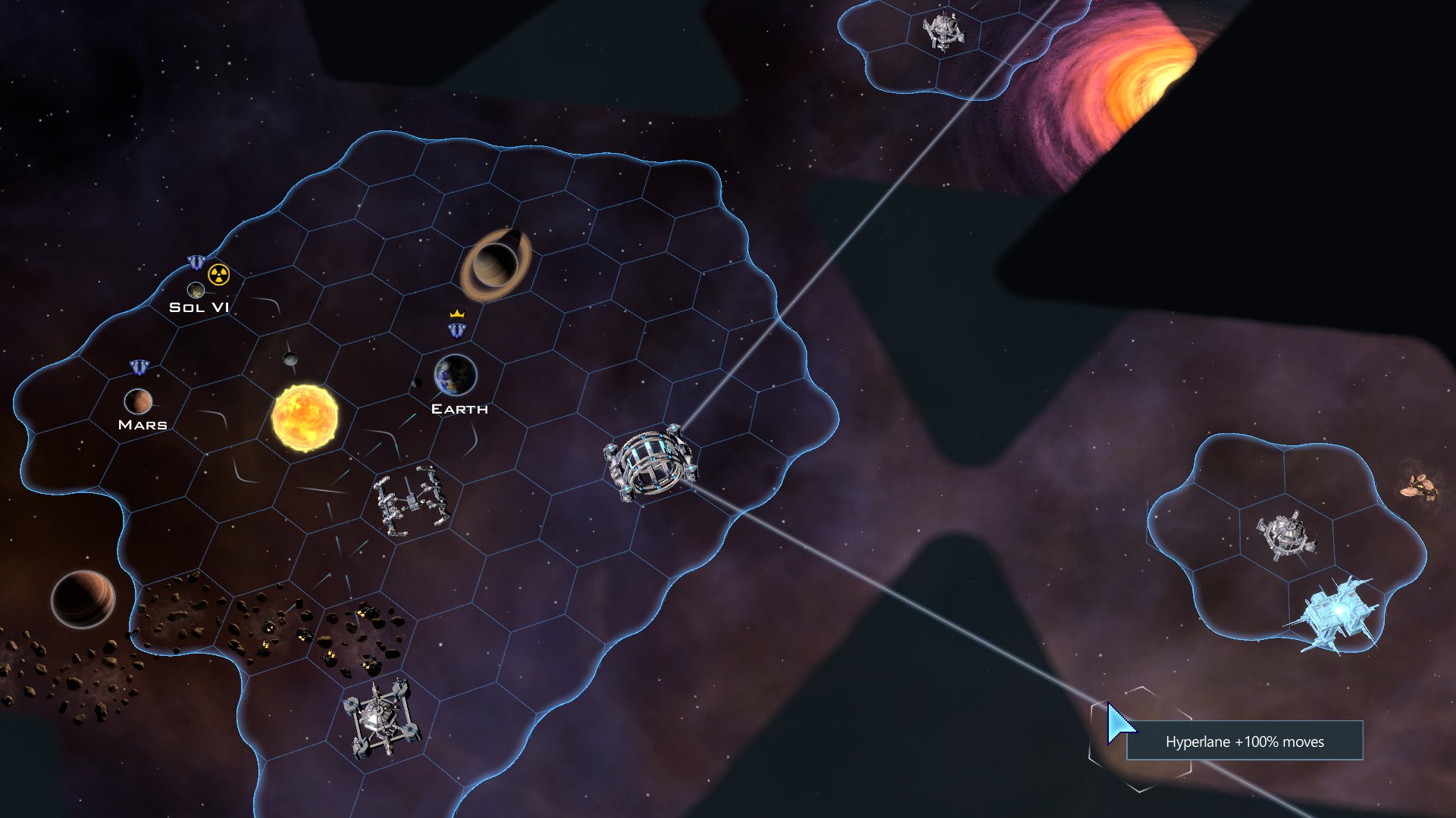 Hypergates. Nearly all space strategy games, including Sins of a Solar Empire, have phase lanes and such between destinations. Galactic Civilizations is one of the few that actually lets you travel in true space anywhere you want. Now this is good and all, but in the late game it can be tedious to travel across large maps.