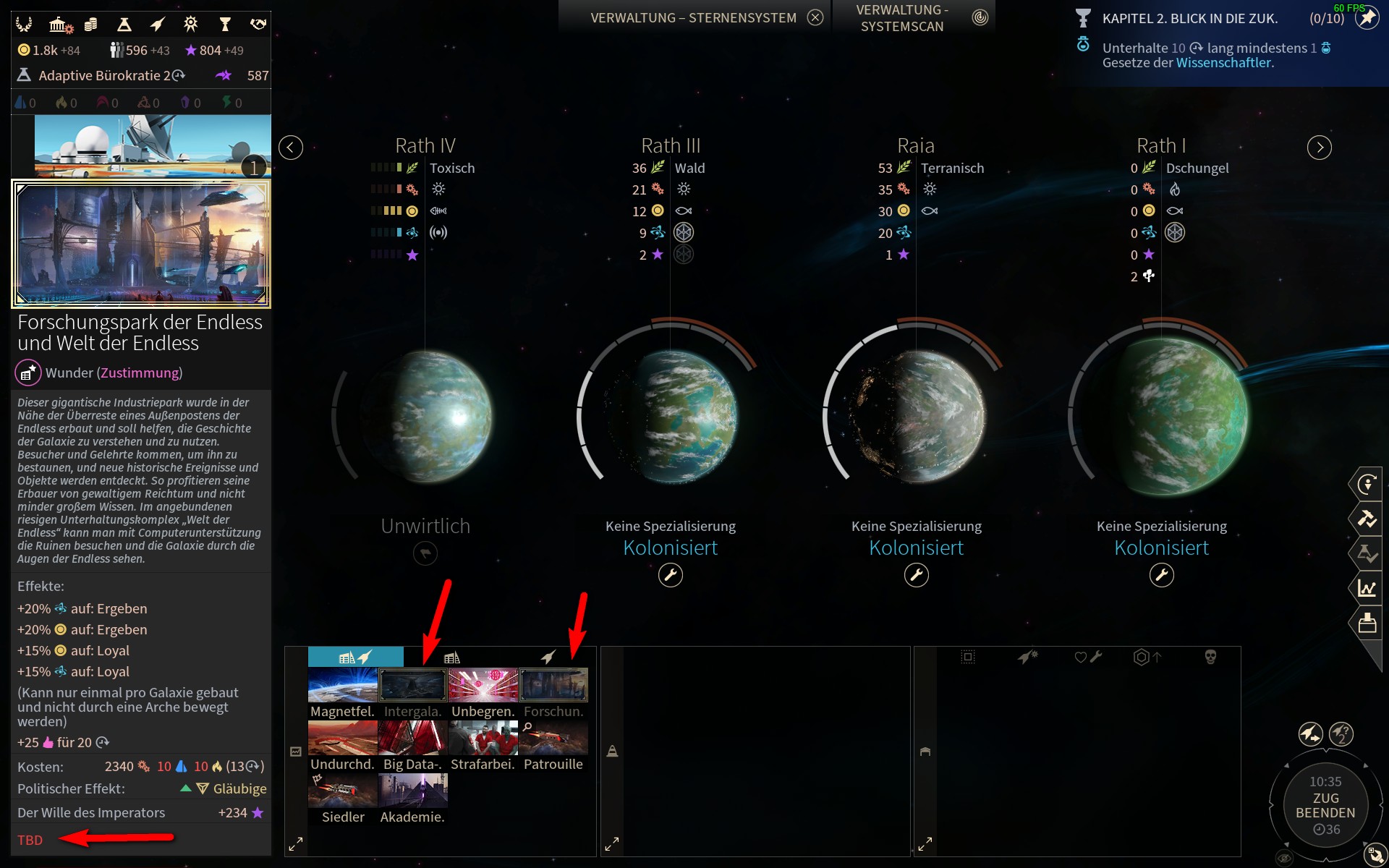 Was das "TBD" genau bedeutet, weiß ich im Moment nicht. Hast Du diesen "Forschungspark der Endless" schon woanders in der Bauschlange? Diese Wunder können nämlich nur einmal in der Galaxie gebaut werden.