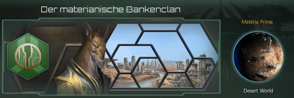 Der Materianische Bankenclan möchte seine Kredit- und Handelsgeschäfte auf die gesamte Galaxie ausbreiten.