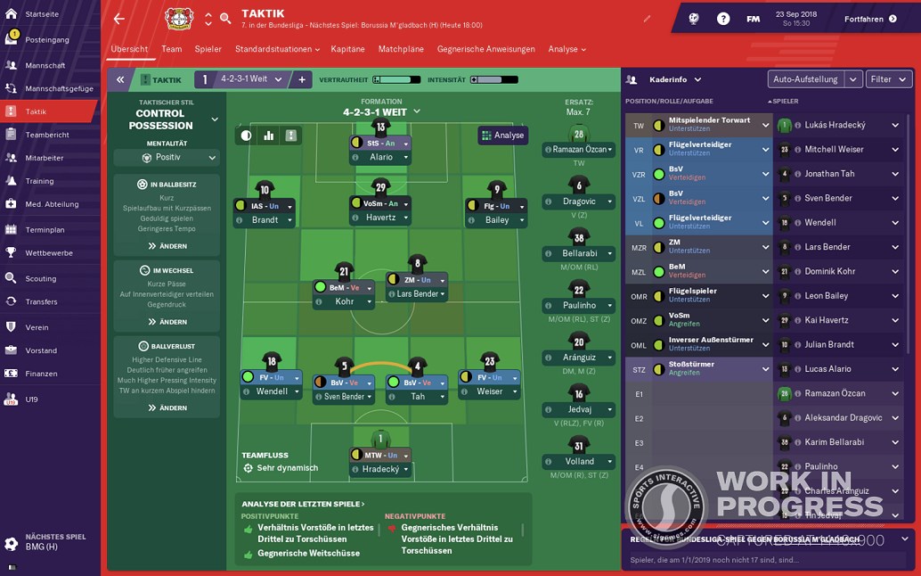 An sich ist es ein tolles Spiel, wenn auch ich weiterhin nicht verstehe wieso der wirtschaftliche Aspekt ziemlich sträflich vernachlässigt wird. Die Ausgabenseite ist halbwegs realisitisch, sinnvoll und befriedigend gelöst, aber die Einnahmenseite ist auf dem Stand von 1990 - es gibt ein Budget, du bekommst anhand deiner Platzierung Geld, der Präsident schließt irgendwelche Sponsorenverträge ab und selbst wenn du das Budget einhälst, kanns du in die Miesen rutschen, was wiederum aber auch egal ist, da es keine Insolvenzen gibt und der Präsident einfach Geld locker macht und Schulden tilgt. Die große Stärke des Spiels ist allerdings wirklich die taktische Tiefe und die Einstellungsmöglichkeiten, die man besitzt. Primär ist es ein doch britisch geprägter Manager, wo es hauptsächlich um Kaderplanung und Taktik geht. Diese beiden Komponenten ist auch auf einem wirklich herausragend gutem Stand und ich kenne Sportartübergreifend keine Simulation, die im Ansatz so eine Detailtiefe in beiden Bereichen bietet. Ich würde mir trotzdem weiterhin wünschen, dass man das Spiel wirtschaftlich an die Realität anpasst. Des Weiteren muss man definitiv das UI kritisieren, im Internet findet man häufig den Begriff Exceltabelle als Beschreibung. Dem würde ich zustimmen, aber das ist noch die Stärke des UI, wie ich finde. Man kann voll indiviualisierte Screens mit für sich relevanten Informationen zusammenbasteln, was ich top finde, aber die Menüführung an der Seite links, Seiten wie der Newsfeed und ähnliche Dinge sind einfach grässlich anzusehen, auch sollte man keine grafischen Highlights bei der Matchengine erwarten, es ist schlicht weg eine Simulation, die wiederum aber ziemlich herausragend gut funktioniert.