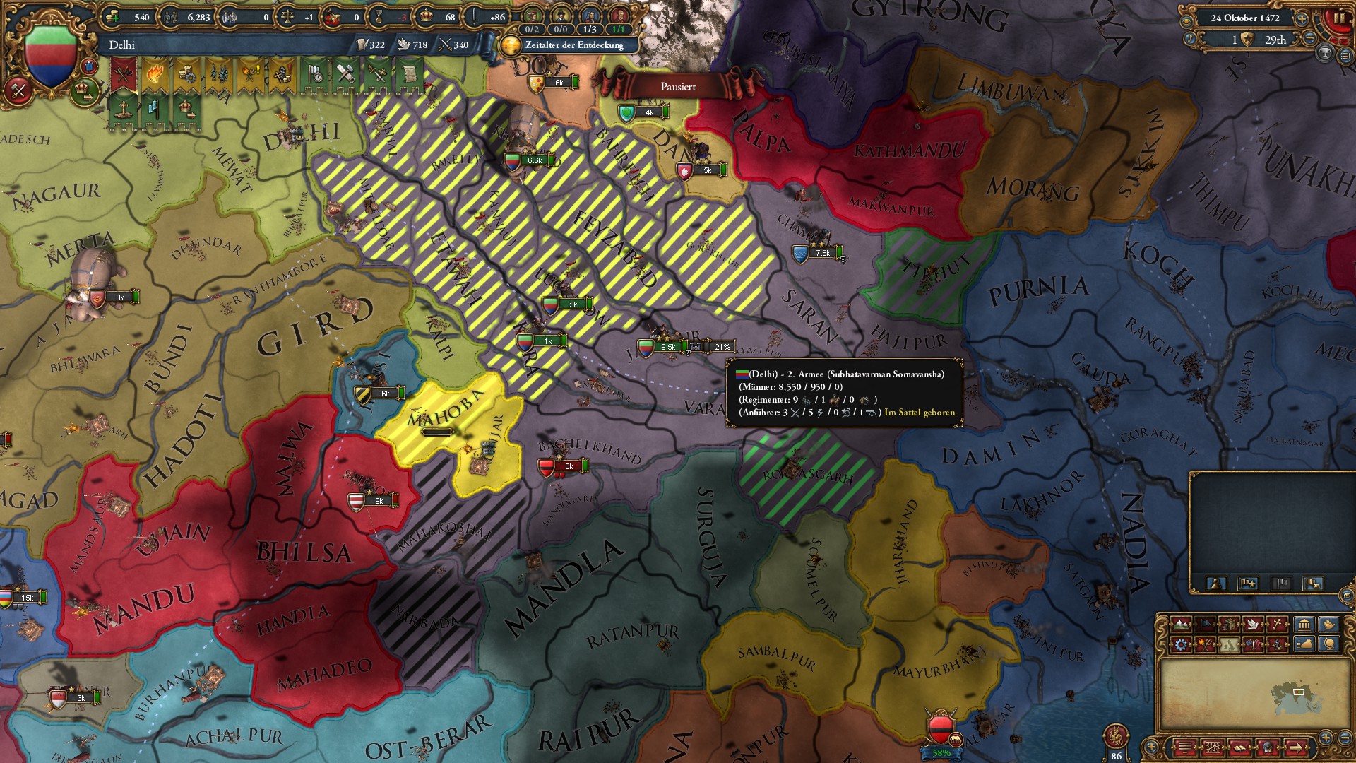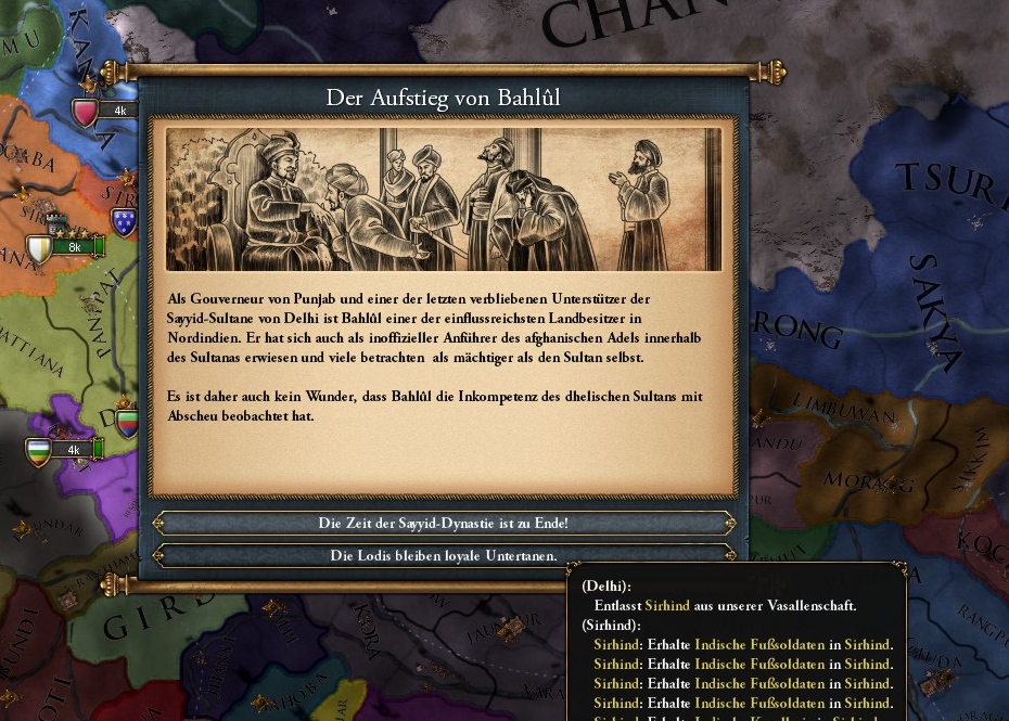 Nordindien steht zu Beginn von Europa Bulliversalis eine Zeit der Unruhe und Veränderung bevor.
