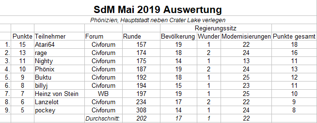 Einsendeschluss ist der 31.5.2019! Saves, die nach Einsendeschluss eintreffen, werden ignoriert, egal ob die Auswertung schon durch ist oder nicht.