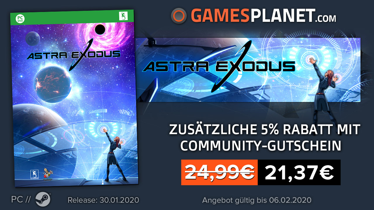 Am 30.01.2020 erscheint Astra Exodus, ein neues 4X-Strategiespiel. Es lehnt sich an die Klassiker des Genre an und kommt auch grafisch im Retro-Look daher.