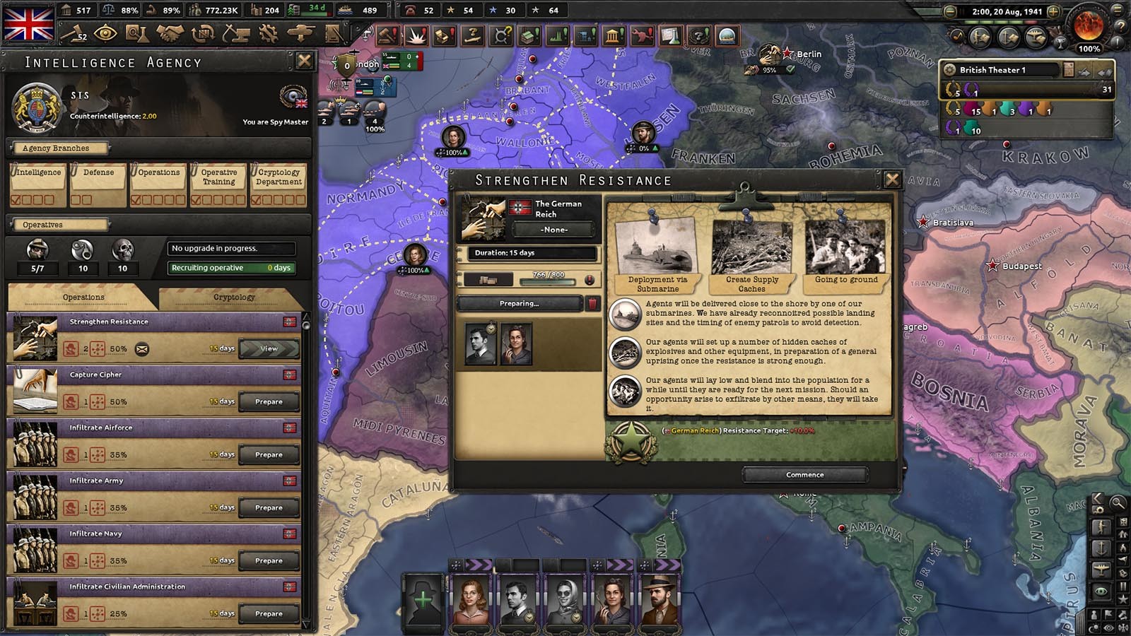 • Widerstandsunterstützung: Setze deine Agenten ein, um verbündeten Widerstandsbewegungen zu helfen und ihnen alles Nötige zu geben, um dem Feind zu schaden.