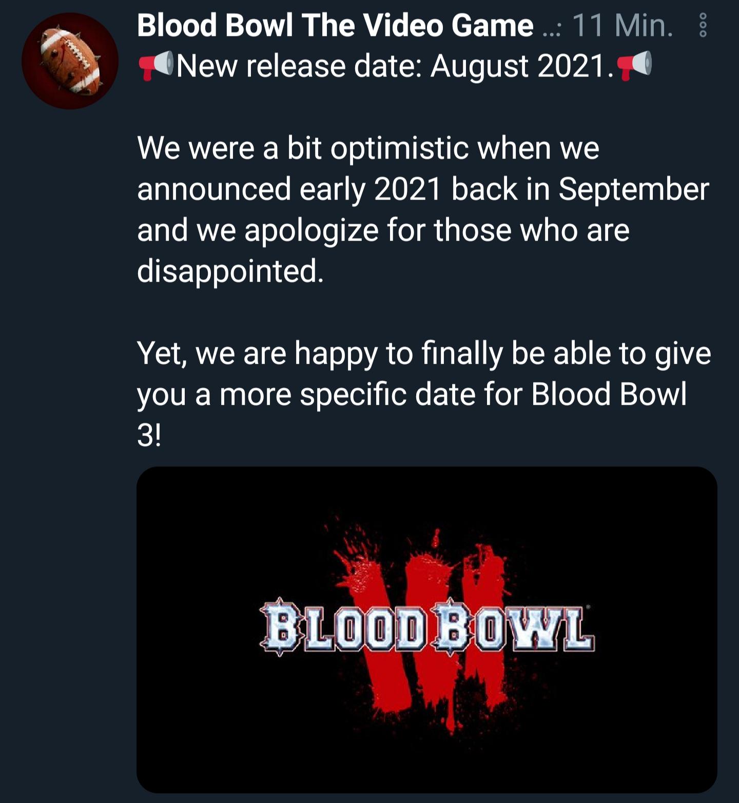 Hallo Chipmunk erst im Herbst soll Blood Bowl 3 rauskommen? ich dachte immer so wies auf Steam steht im August und gegebenenfalls 4 oder 8 Wochen davor die Beta wie beim letzten mal.