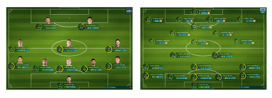Alle meine Mannschaften sind darauf ausgerichtet und nutzen 2 offensive Spielsysteme (für schwache Gegner) und ein defensives Spielsystem (für starke Gegner)