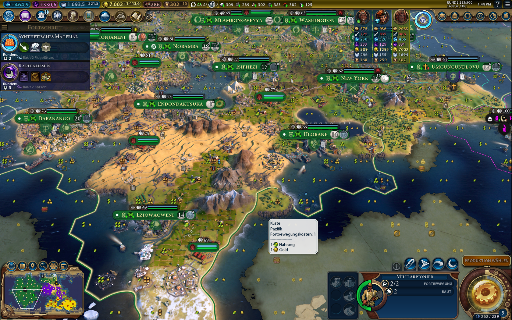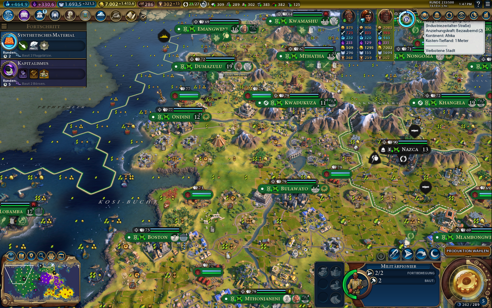Auch da ist das sicherlich möglich - wenn auch herausfordernd.). Hab nur 5 zusätzliche Militäreinheiten gebaut, davon 3 Schiffe.